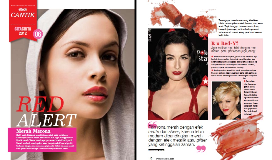 warna lipstick dan tutorial menggunakan lipstik merah juga ada di sini.