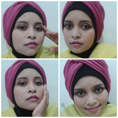 dilabur mukanya. Setelah selesai, kuserahi dia dengan pashmina, inner dan sampur tari. Kemudian saya pinjami kamera saya dan mulailah dia mengolah helai pashmina menjadi = Turban! Wow. Saya takjub sama hasil kreatifitasnya membuat turban hingga saya jadi punya ide untuk memakainya kapan-kapan.