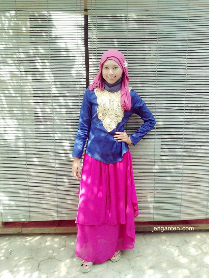 Mungkin satu-satunya info yang bisa didapat dari posting ini adalah ternyata warna fucshia sama biru malam bisa cocok jadi outfit Lebaran (setidaknya menurut saya sih. Hehehe)