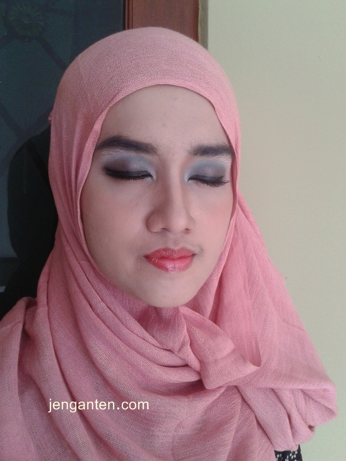 Karena alis Jeng Ela sudah tebal dari sononya, saya cuma mempertegas dengan mengisi warnanya saja. Nggak ada acara kerok alis dan dibentuk menurut kaidah pembentukan alis(??). Lalu saya pasangkan bulu mata natural. Belajar dari postingan yang ini, saya akhirnya membeli lem bulu mata baru yang ternyata menjadi penyelamat saya. Akhirnya bulu mata dapat terpasang dengan sukseiss dan rapih. Hehe, Alhamdulillah banget yah.