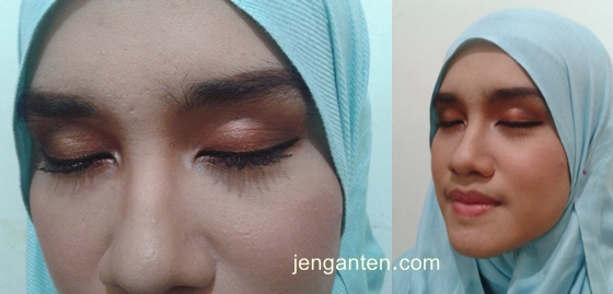 Kemudian, pakai lipstik dan blush on warna natural. Saya memakai lip liquid Make Over. Warna natural pada lipstik dan blush on berguna untuk menyeimbangkan makeup mata yang sudah jadi pusat perhatian. Tapi jika ingin makeup yang grande, pakai lipstik bold pun tidak masalah. Se-suka-sukanya kamu saja. Apa sih yang nggak boleh? :D