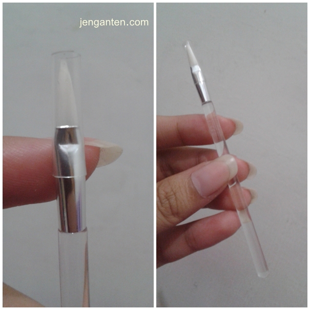 Produk ini dilengkapi dengan satu kuas dengan gagang transparan. Secara kualitas, saya anggap lumayan untuk pemakaian lipstik palet. Tapi yang disayangkan, jumlah kuasnya tidak mempu mengakomodasi semua warna. Idealnya satu kuas itu cukup untuk 2-3 warna saja. Nah ini, ada delapan warna tapi kuasnya cuma satu. >.<