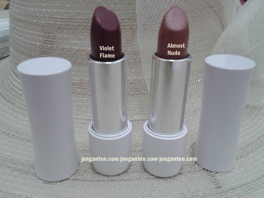 Oke, kembali ke review. #fokus. Kali ini saya berkesempatan mereview dua warna dari lipstik Jafra, yaitu Violet Flame dan Almost Nude.