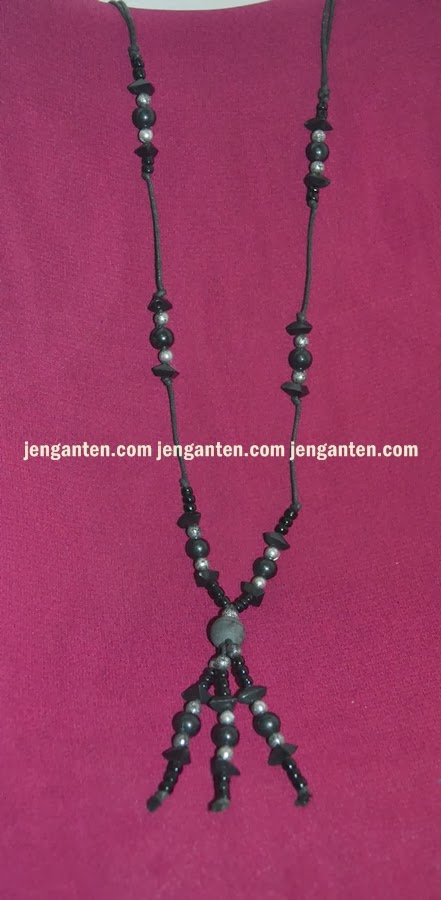 Terdiri dari 1 kalung manik (bukan tasbih), 1 kalung manik hitam etnik.