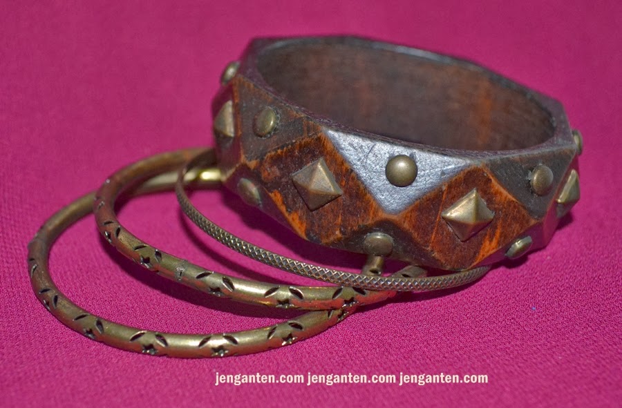 Terdiri dari: 2 gelang kuningan besar, 1 gelang kuningan kecil, 1 gelang kayu.