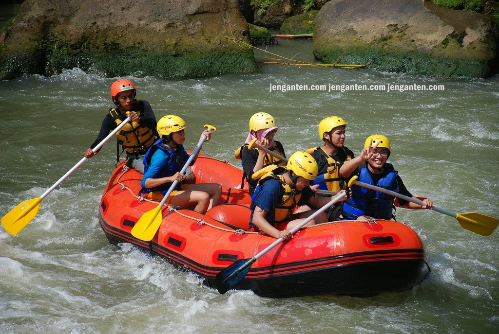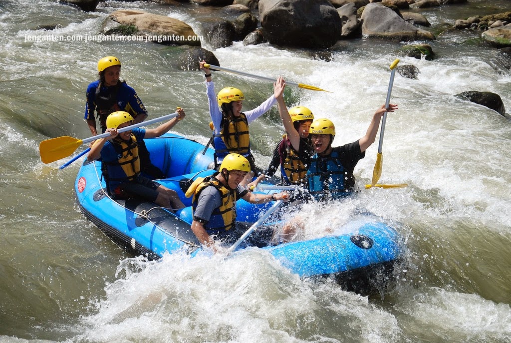 Yes, kali ini saya mau secara khuseus cerita soal Rafting, atau bahasa kecenya Arung Jeram. Haha. Teman-teman di sini, pasti suka kan main ke alam? Gegulingan di pasir, tersesat di hutan, mencari foto sunset, atau nyebur ke air? Iya kan, pasti suka kan? Hehe, saya cuman sedang menghitung, ada berapa sih pembaca blog ini yang kegiatannya lebih seru dari sekedar mantengin smartphone, ngecek Path, Twitter, sambil Googling tentang Concealer Wardah, Jenganten, Cream Kelly, atau hijab tutorial (ketiga hal tersebut adalah keyword terbanyak yang masuk ke blog ini. Haha).