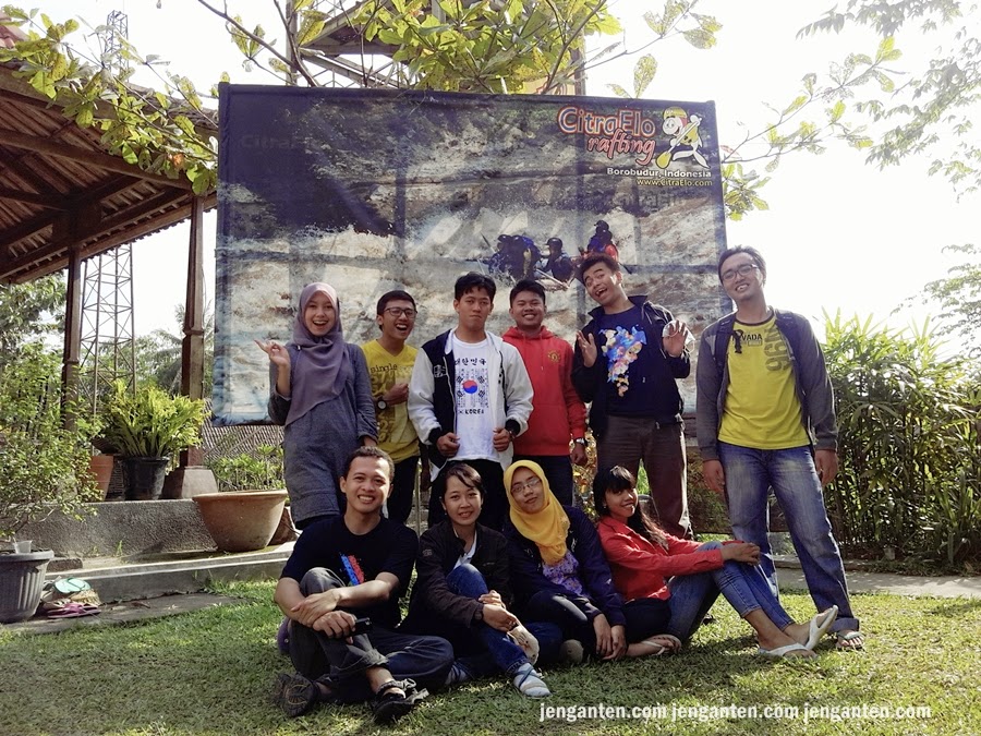 Nah, kamu, yang selama ini lebih sering ngabisin waktu di kamar, coba deh sekali-kali cobain hal seru semacam rafting. Sebenarnya sebelum ini saya sudah pernah rafting di sungai Serayu (Banjarnegara - Wonosobo, Jawa Tengah) yang medan jeramnya jauh lebih tinggi levelnya dibanding sungai Elo Magelang. Namun kali ini karena diajak temen-temen, ya akhirnya ikut juga. Toh, lokasinya cukup dekat sama tempat tinggal saya. Tinggal meluncur ke utara, ke arah Candi Borobudur, sudah langsung ketemu sama Citra Elo Rafting. Hehehe.
