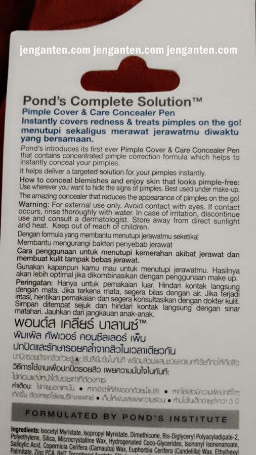 Kemasannya berbentuk stik seperti lipstik matte. Hati-hati saja kalau disimpan bareng lipstik, bisa-bisa kelewat pakai concealer untuk bibir. Hehe. Karena bentuknya begini, alhasil concealer ini lebih higienis. Kita nggak perlu menyentuh produk untuk mengaplikasikan ke wajah. Bandingkan sama concealer yang diwadahi pot, udah harus diambil dulu pakai jari, lalu ke muka pun harus diusrek-usrek lagi. Dari keterangan di kemasan, saya bisa tahu bahwa produk Pond's varian ini (sepertinya) tidak diproduksi di Indonesia. Tapi tenang aja Jeng, kamu bisa dengan gampang menemukan produk ini di supermarket besar seperti Giant, Hypermart, Carrefour dsb dengan harga kurang dari Rp 30.000,00.