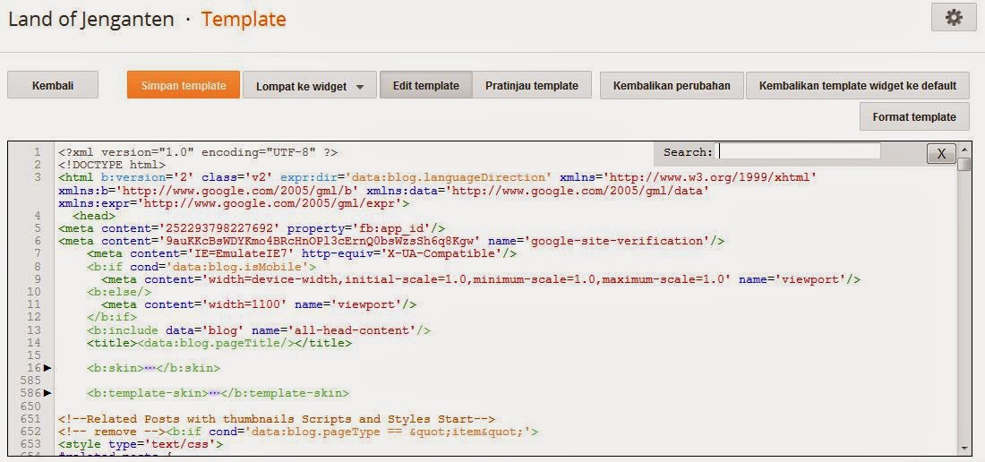 3. Backup dulu kode template tersebut untuk menghindari hal-hal yang nggak diinginkan. Copy-paste saja ke Notepad, lalu disimpan.