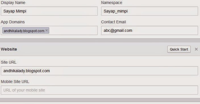 6. Kamu akan mendapatkan aplikasi ID. Tapi belum selesai, kamu masih harus mencantumkan alamat blog kamu di dashboard aplikasi.