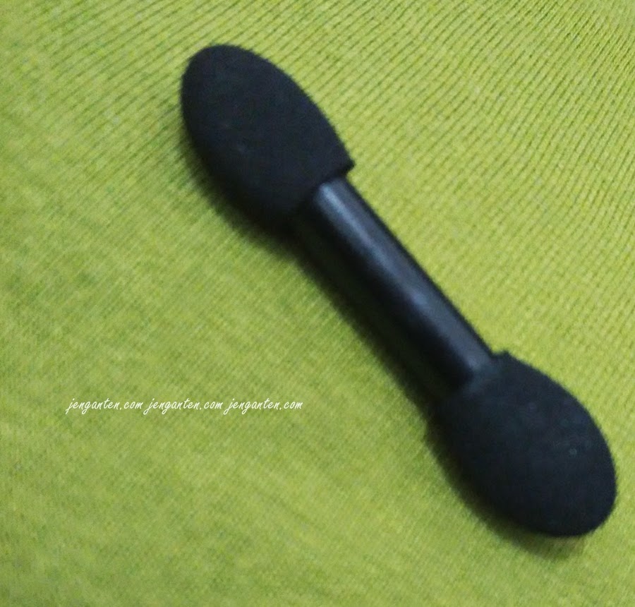 Kerangka ringkih, tetapi dalemannya unggul. Saya suka dengan aplikatornya. Warna hitam dengan kepala aplikator yang kokoh dan empuk. Mudah banget dipakai untuk mengambil warna eyeshadow untuk diculek ke kelopak mata. Saya memang lebih suka memakai kuas untuk memakai eyeshadow, tetapi kalau untuk mengambil sejumput warna untuk ditempel ke kelopak mata, saya lebih sering memakai spons/aplikator bawaan eyeshadow.
