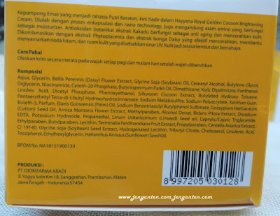 | Komposisi Rejuvenation Cream Hayyana. Klik untuk perbesar. |