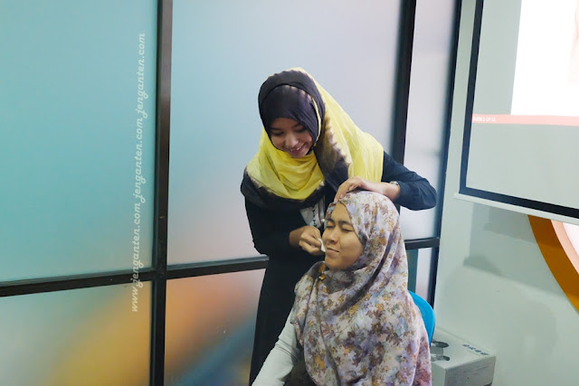 Di dalam melakukan demo, saya menggunakan 'korban' Mbak Febri yang dipilih secara serentak oleh semua peserta beauty class. Saya mencoba mengaplikasikan makeup sederhana, simpel, dan effortless untuk ke kantor atau bertemu dengan klien di wajah Mbak Febri. Langkah-langkah makeup yang saya sampaikan adalah mulai dari mengaplikasikan pelembap, foundation, bedak, sampai lipstik dan blusher. Pengen tau langkah-langkahnya beserta cara mengaplikasikannya dengan benar? Makannya ikut #JengantenBeautyClass yaa...