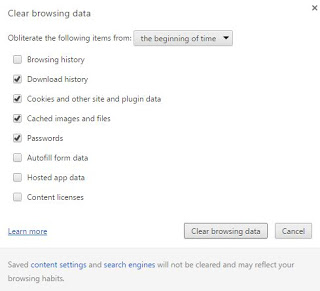 - Silahkan centang: Browsing History, Cookies, Cached, dan password
