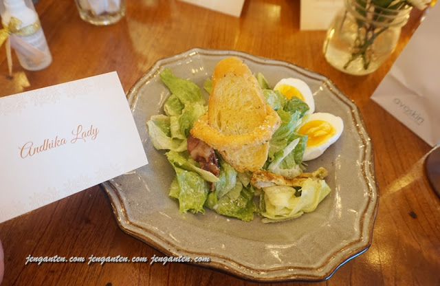 Sambil menunggu, kami disuguh dengan apettizer spesial dari Canting yang lupa entah apa namanya. Paduan salad dengan roti, onion ring dan telur rebus. Rasanya cukup menggugah selera lho.