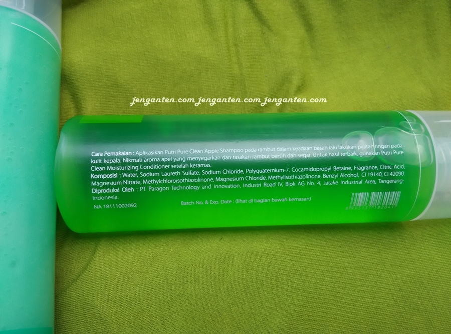 Ini adalah merk sampo yang cukup baru saya kenal. Padahal kata Arum dan Vani, merk ini sudah ada sejak dulu. Hehe. Waktu itu saya mampir ke minimarket dekat rumah dengan tujuan membeli sampo dan kebutuhan bulanan. Eh, pas lewat ke jejeran sampo, saya melihat ada sampo merk Putri yang mencolok dengan warna hijaunya. Sekilas mirip dengan sampo apel biasa. Karena tangan saya itu nggrathil, akhirnya saya coba comot dan baca-baca. Ternyata produsen sampo merk Putri adalah PT Paragon Indonesia, yaitu pabrik yang juga memproduksi Wardah dan beberapa produk Make Over. Jadi yaaa, bisa saya simpulkan bahwa produk Putri ini bukan abal-abal karena dibikin di pabrik yang profesional.