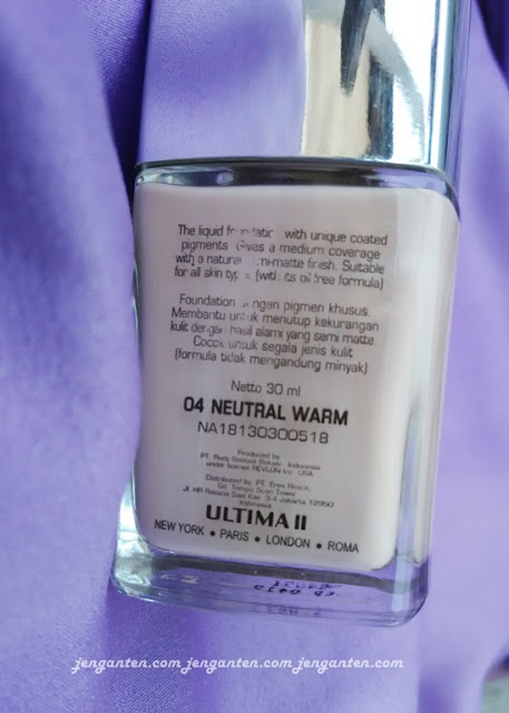 Ultima II Wonderwear Liquid Foundation memiliki 9 pilihan warna yang dicocokkan dengan kulit orang Indonesia. Yang saya miliki ini adalah warna nomor 4, Neutral Warm. Shade ini agak terlalu gelap di kulit saya, tetapi dengan pertimbangan banyaknya populasi orang yang punya warna kulit seperti ini akhirnya saya beli yang Neutral Warm.
