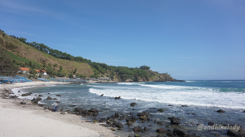 Sampai di lokasi, kamu akan menemukan pantai dan bukit seolah-olah menjadi satu bagian yang terpisah. Di bagian bawah yang landai, wisatawan bisa melakukan selancar (ada instrukturnya), kedai sea-food, atau sekadar berjemuran di atas pasir. Namun kegiatan favorit saya adalah: keceh-keceh air yang berbatu sambil foto-foto.