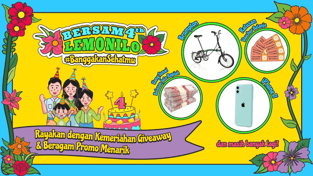 Lemonilo, sebagai brand yang naik daun dan ngehits, kini menggaet Ria Ricis sebagai partner giveaway. Nggak tanggung-tanggung, hadiahnya sepeda brompton, iphone 11, uang tunai dan hadiah menarik lainnya! Tahu sepeda brompton? Itu lho, sepeda yang harganya bisa dua-tiga kali motor bebek premium. Kalau kamu memakai itu ke warung kopi, langsung auto pengen masukin itu sepeda ke dalam kafenya. :D