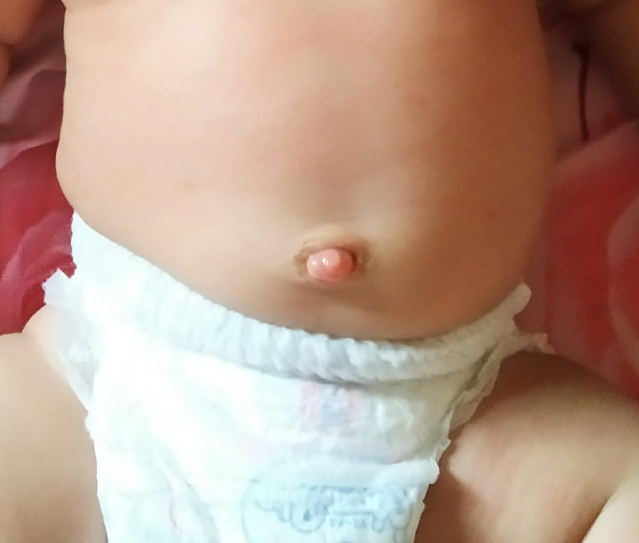 Feeling ibu tak pernah salah. Puncaknya adalah saat pusar yang basah itu mulai muncul semacam usus dan berubah menjadi benjolan membesar seiring berjalannya waktu. Kemunculan pertama saat Linam berusia sekitar 6 minggu. Makin lama makin besar, dan basahnya pun tidak berhenti. Kemudian saya bawa ke dokter di faskes BPJS kami.