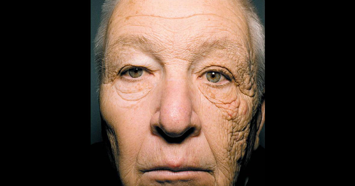 Jadi kakek tersebut adalah seorang supir truk yang telah menggeluti profesinya selama puluhan tahun. Sisi sebelah kanan (atau kiri buat si kakek), yang banyak kerutnya itu adalah sisi yang terkena matahari langsung. Sementara sisi sebelah kiri lebih terlihat halus karena tidak menghadap matahari. Aku menduga si kakek tentu saja belum mengenal apa itu sunscreen, sehingga efek paparan sinar matahari baru terasa setelah bertahun-tahun.