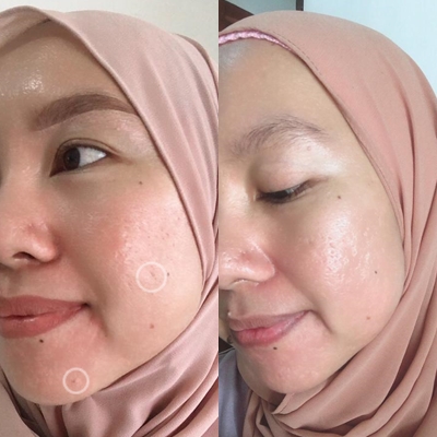 Ini adalah wujud foto before-after pemakaian Skintific selama 5 hari. Terlihat jerawat di bagian dagu dan leher tampak berkurang dan kempes. Ini bocoran rutinitas skincare aku: