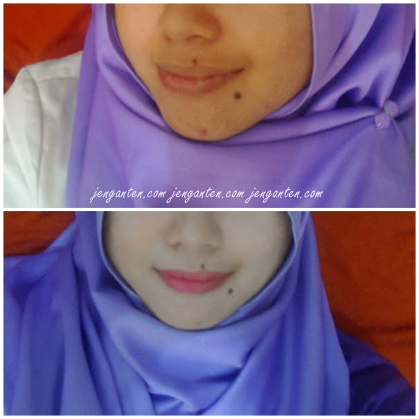 Lalu setelah pakai Any Cushion, boleh dilanjutkan memakai foundation atau BBCream, atau langsung bedak juga nggakpapa. Di sini bisa dilihat gimana kemampuan Any Cushion menyamarkan kemerahan dan kekusaman kulit saya. Saya cuma pakai bedak setelah memakai Any Cushion.