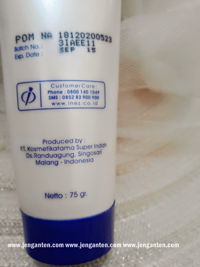 Kemasannya simple dengan signature tutup warna biru khas Inez. Tulisan di kemasan juga nggak neko-neko. Masker ini tidak menuliskan janji-janji muluk yang biasa tertulis dalam kemasan produk kosmetik semisal "Dapatkan kulit putih dalam dua jam", "Menghilangkan jerawat dalam hitungan detik", "Membuat kulit cerah bersinar, flawless, putih seperti perempuan Nigeria", "Dibuat dengan khasiat susu tapir dari Brazil yang terbukti mampu melawan garis penuaan" dsb.