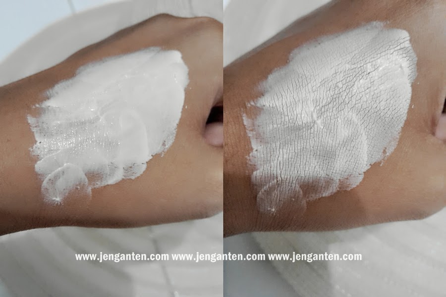 Masker ini bertekstur lembut, tidak ada scrub sama sekali dan sangat mudah mengering dalam hitungan kurang dari 5 menit. Kemudian ketika dipakai di muka, ada sensasi dingin-dingin hore. Kulit mendadak terasa terhidrasi dan dimanja. Buat beberapa orang, memakai masker ini terasa celekat-celekit di kulit, tetapi saya tidak mengalami hal itu. Memang setahu saya, memakai masker apapun rasanya bisa berbeda-beda untuk masing-masing orang. Asumsi saya sih itu karena kondisi pori-pori kulit orang beda-beda. Yang berpori dalam, tentunya masker bisa masuk lebih dalam dan mampu menyentuh sensor saraf perasa sehingga terasa agak celekat-celekit (CMIIW ya).