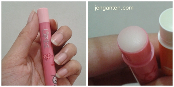 Lipbalm yang di gambar di atas rasanya mangga euy! Tapi aromanya doang, jadi jangan dijilat-jilat ya, apalagi sedang puasa. :p. Tekstur lipbalm Lip Ice ini lebih lunak daripada Caring. Daya lembap Lip Ice ini sekitar 3 jam berpuasa. Jadi bagi yang emang suka rasa mangga, jangan lupa untuk touchup setiap tiga jam sekali. Sama seperti Caring, lipbalm ini juga ada sensasi mint ketika dipakai. Lipbalm ini memiliki kandungan SPF 15 jadi nggak perlu takut membawa bibir berpanas-panasan. Satu lagi yang saya suka dari Lip Ice, kemasannya kecil dan muat di bibir (lah, susah nemu istilahnya. >.<), jadi ketika diaplikasikan buat bibir saya yang sedang, cukup mudah.