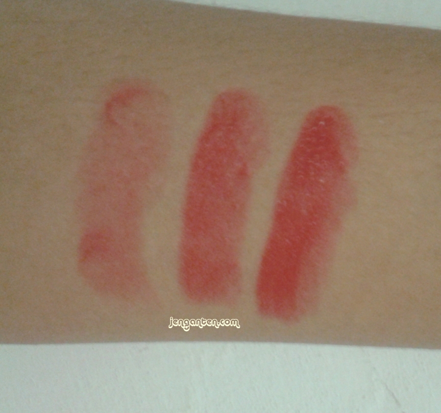 Kenapa saya tambah suka dengan lipstick merah ini? Jawabannya adalah lipstick merah dapat dibuild ketebalan warnanya sesuai kebutuhan. Kalau mau hasil warna di bibir yang natural, cukup dioles tipis-tipis. Dan kalau ingin hasil yang lebih cover, tambahkan semangat 45 ketika ngoles di bibir. Dijamin hasilnya cover dan merahhh merekahhh, ah..