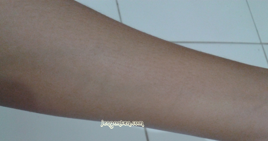 Warna produk ini mirip banget sama warna kulit saya. Hanya saja shadenya lumayan terang untuk ukuran kulit Indonesia. Lihat saja pas swatch di tangan, keliatan banget kalau beda banget warnanya. Tapi ketika diaplikasikan ke wajah saya, warnanya cukup wearable ternyata. Hehe. Teksturnya cukup creamy dan mudah dibaurkan pakai jari. Produk ini juga tidak mudah bergeser dari kulit jika nggak sengaja kena gesekan.