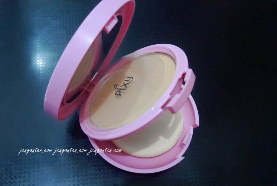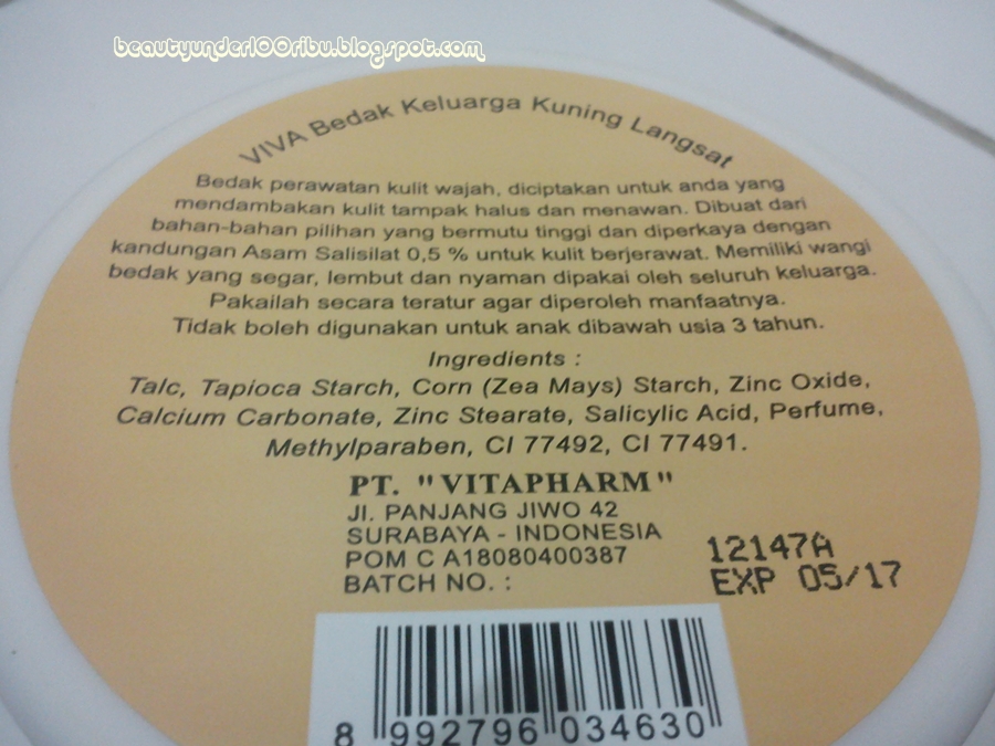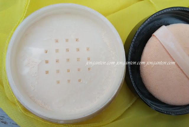 Bedak ini juga samar-samar memiliki butiran shimmer dengan konsentrasi yang kecil sekali.