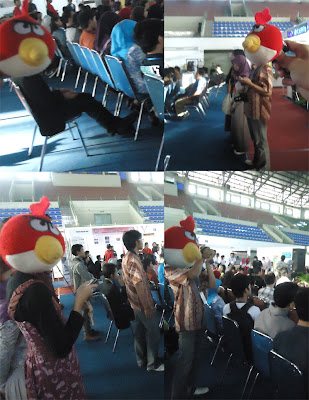 Saya pilih pakai coat merah yang warnanya sama persis dengan lipstik, plus jilbab motif leopard untuk memberi kesan pada foto. Yuhuuu. Nah, acara berfoto-foto makin menggila karena ada partner in crime dari temen kost yang bisa diajak narsis bersama.