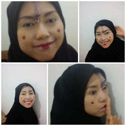 Nah, dandan 'seadanya' itu bagi setiap orang memang sangat relatif. Ada yang bilang pakai makeup mata full dengan bulu mata itu termasuk makeup 'seadanya'. Ada yang cuma pakai eyeliner, itu seadanya. Kalau buat saya, makeup 'seadanya' untuk berfoto-foto adalah lipstik merah dan blush on. Sekali lagi, saya pertebal bagian berfoto-foto untuk menegaskan bahwa makeup tersebut memang khusus untuk foto-foto. Kalau dipakai untuk sehari-hari, kayaknya terlalu menor kali ya. :p