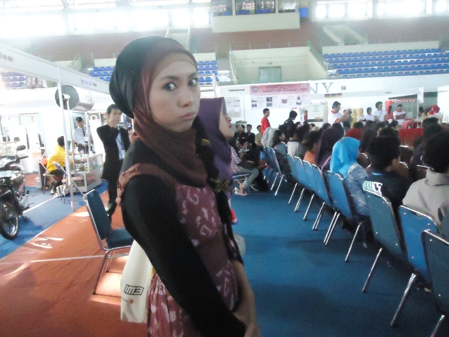 Saya pilih pakai coat merah yang warnanya sama persis dengan lipstik, plus jilbab motif leopard untuk memberi kesan pada foto. Yuhuuu. Nah, acara berfoto-foto makin menggila karena ada partner in crime dari temen kost yang bisa diajak narsis bersama.