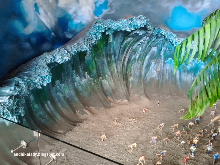 Dan tentu saja, jangan sampai kamu melewatkan Museum Tsunami. Museum yang didesain oleh Pak Ridwan Kamil sebelum menjadi walikota Bandung ini menampung banyakk cerita tentang Tsunami. Dari foto-foto tsunami, kisah seorang anak yang kehilangan keluarganya ketika bencana, sampai sebuah jam dinding -sumbangan dari seorang penduduk- yang jarumnya menunjuk ke waktu kejadian tsunami. Konon jarum jam tersebut tetap tidak mau kembali ke jarum semula.